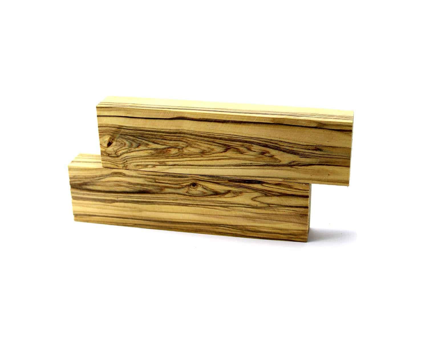 Denne genstand indeholder fem-par præcision-cut kniv håndtag blanks, der er lavet i det hellige land fra bæredygtigt høstet, autentisk Bethlehem Olivewood.