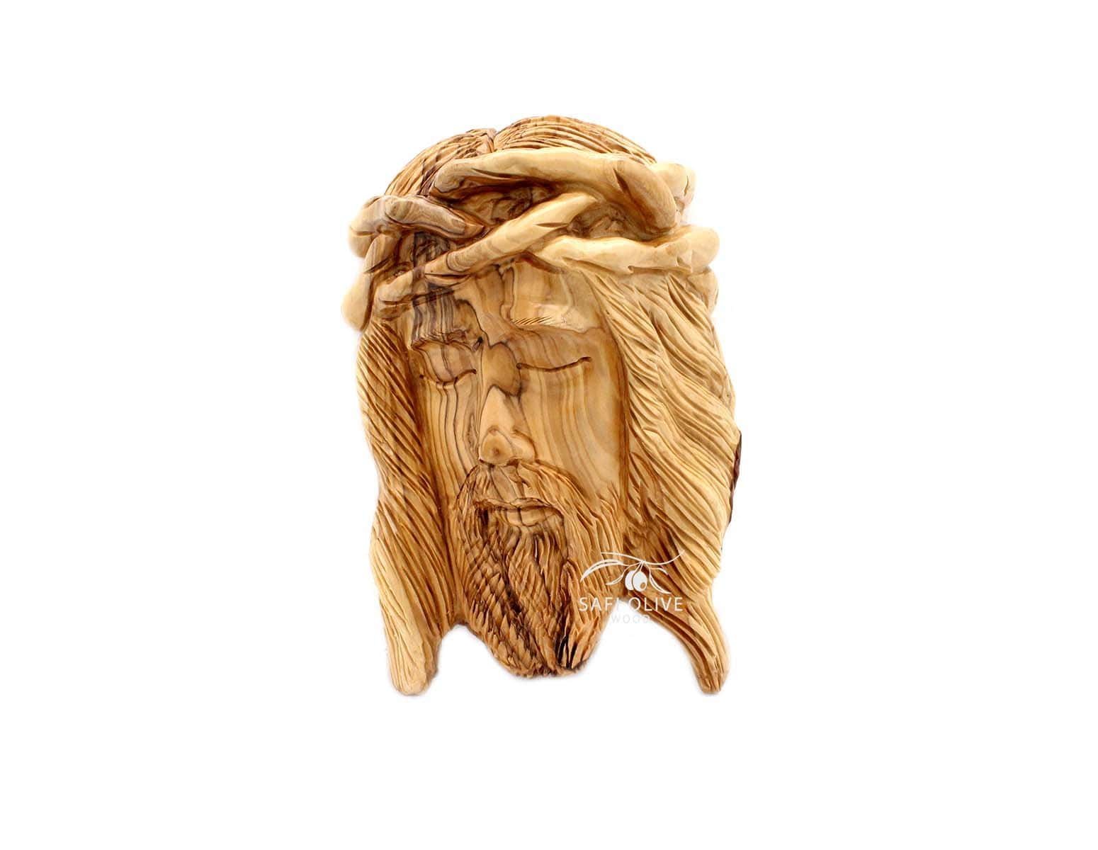 Este hermoso colgante de pared Sacrificio de Cristo está tallado a mano en Tierra Santa en auténtica madera de olivo de Belén, recogida de forma sostenible. Muestra a Jesús con la corona de espinas. Esculpida con esmero, esta escultura de la Cabeza de Cristo es ideal para el hogar o el santuario.