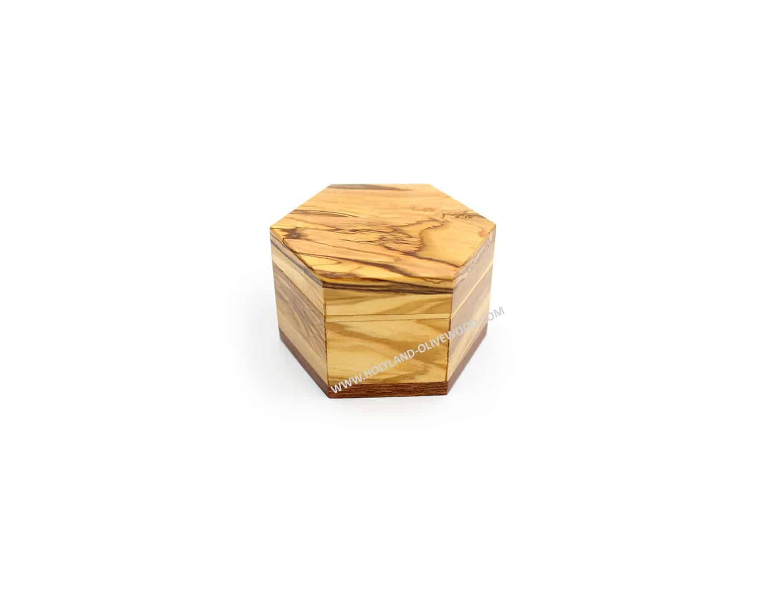 Tämä tyylikäs koru – / rukousnauha on käsityönä Pyhässä maassa kestävästi korjatusta, aidosta Betlehem Olivewoodista. Tämän laatikon valmistamiseen käytetty puu valittiin käsin rikkaan, kontrastisen viljakuvion varmistamiseksi. Siinä on myös magneettinen tiiviste, musta huopavuori ja kiinteä mahonkipohja.