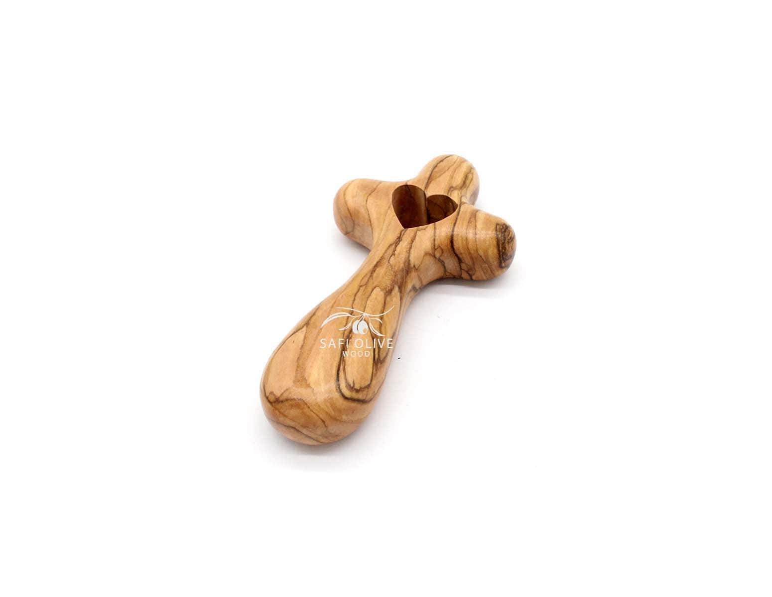 Croce di legno d’ulivo con cuore (10 CM / 4”) #CR175