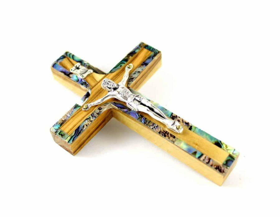 Catholic Olive Wood & Mother Of Pearl Crucifix (12 cm / 4.75”) #CR138