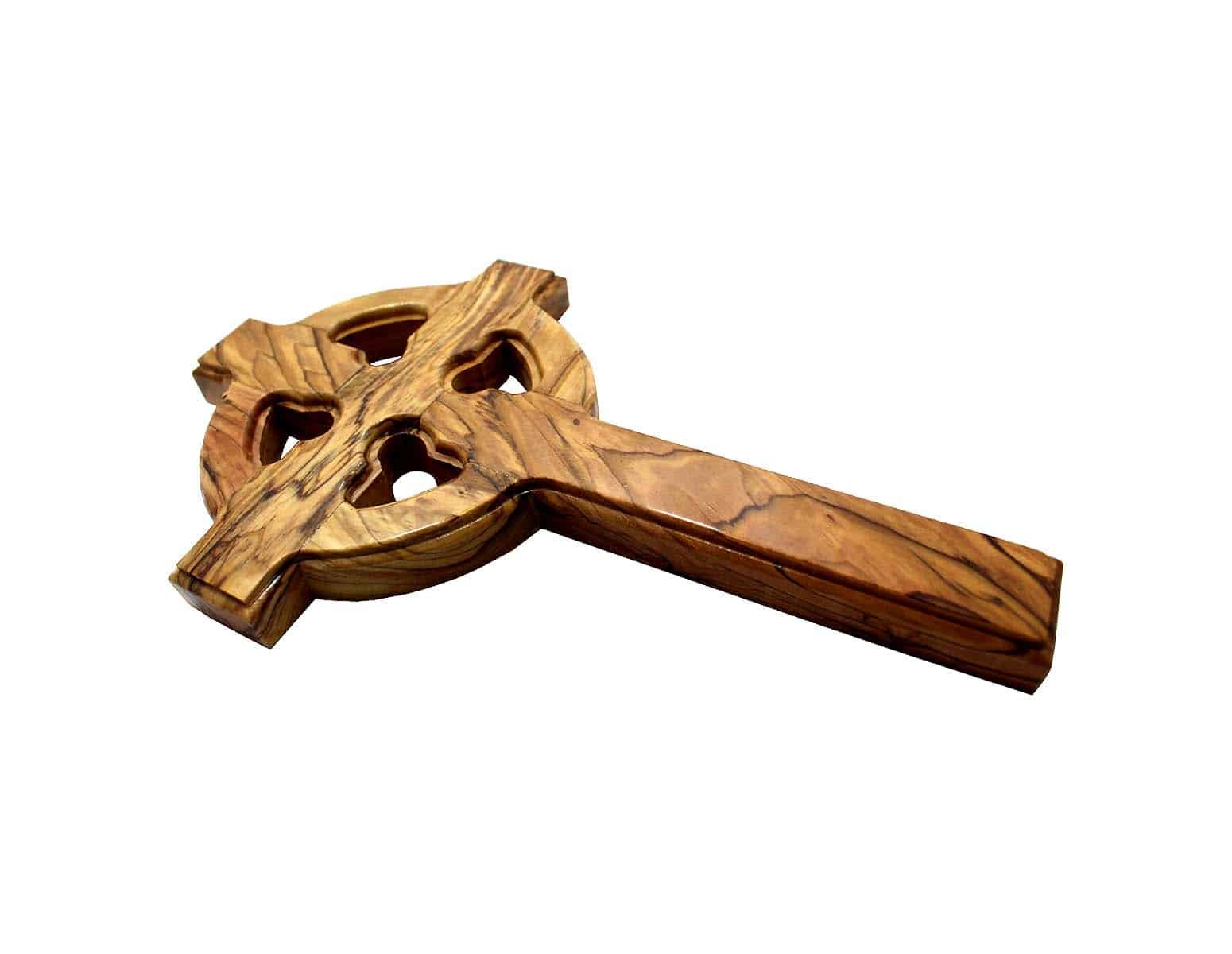 This ringed Celtic hanging cross is handmade in the Holy Land from sustainably harvested, authentic Bethlehem Olivewood. It can be often seen in Ireland and other countries where Celtic traditions shaped society. This stunning cross will easily add an inspirational tone to any space.